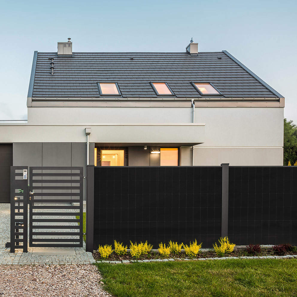 Unsere bifazialen Module fangen Sonnenlicht von beiden Seiten ein – sowohl direkte als auch reflektierte Strahlung – und verwandeln damit bisher ungenutzte Flächen in wertvolle Energiequellen. So verbinden die Solarzäune Funktionalität und Design: zuverlässiger Sichtschutz, nachhaltige Stromerzeugung und eine attraktive Alternative zu herkömmlichen Zäunen.